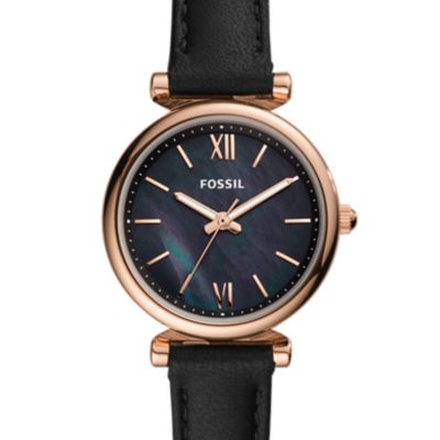 Carlie Mini Three Hand Black Leather Watch Es4700 Fossil